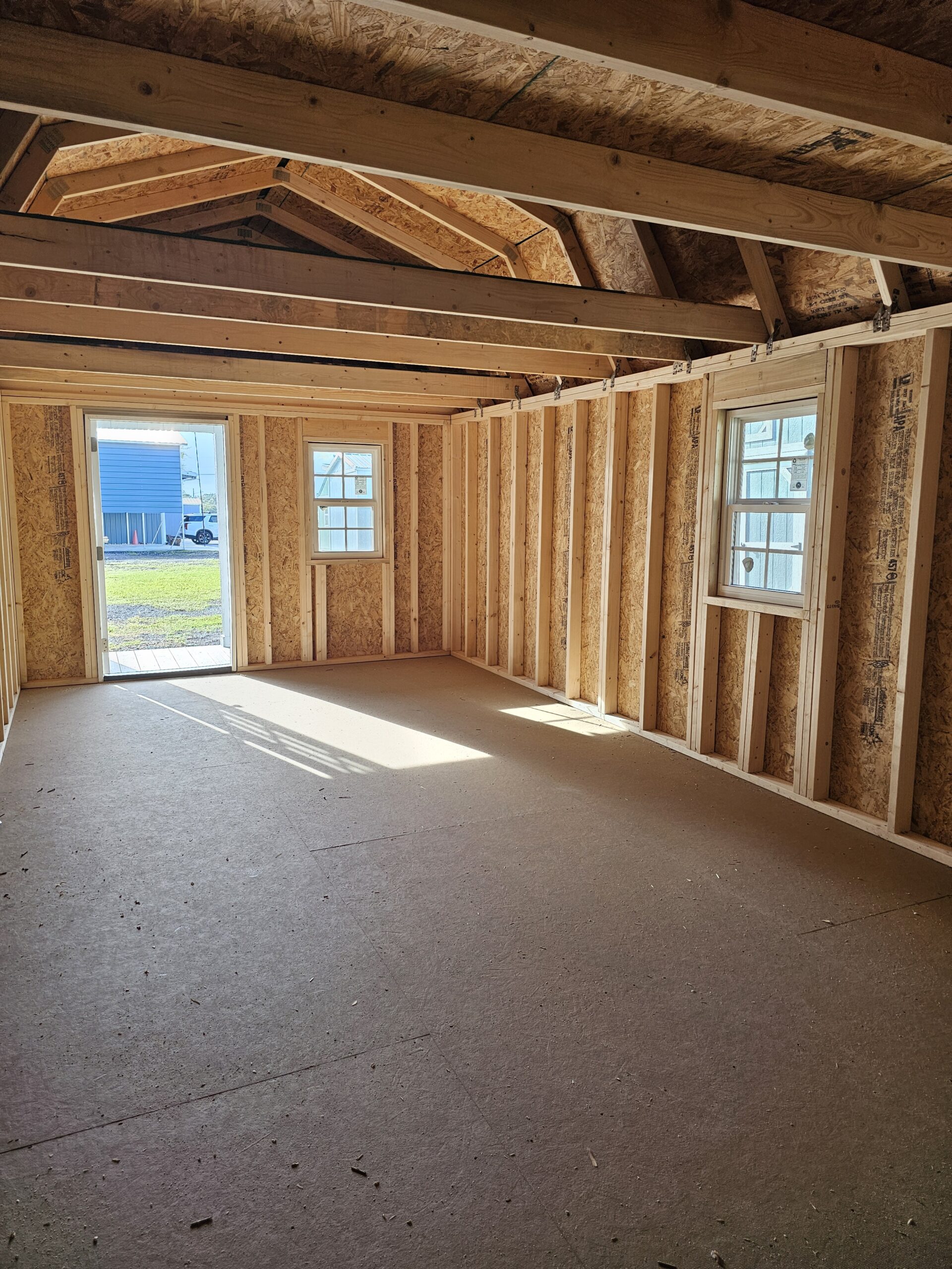 3′ 9-lite door, (2) 2×3 Insulated Windows, 4′ Porch, (2) 8′ Lofted (1) 4′ Center loft